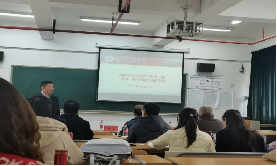 此次参赛教师及授课内容主要有:杨春艳《乡土历史文化调查》、胡文兰《田野调查基本概念》、夏远力《历史教学法》、崔璨《HIP-HOP文化的演变》、王朝阳《苗族文化介绍》、赵宁芳《认识马克思主义》、何慧琳《历史文化名城》、申雯清《民族学人类学经典导读》、高照晶《“赫尔之家”美国女性进步主义改革的缩影》、陈文元《中国民族史-土司制度》、史达宁《中国历史文选三》、贺源《人类学概论》、张岳嵩《中华民族共同体意识教育》。各位授课老师准备十分充分,课程内容丰富,通过PPT展示、板书搭配口头及肢体语言向台下师生生动地展示了授课内容承上启下、授课方式简单有效、授课节奏快慢有序、课堂互动生动有趣、课堂气氛积极活跃,使此次参与活动的师生受益良多。