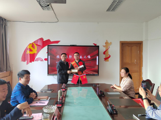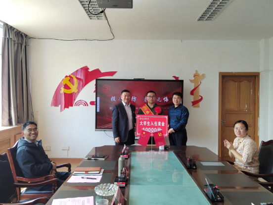 (唐懈书记和董强经理代表集团赠送奖金)