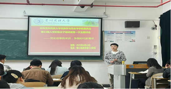 2022年4月13日12点45分,中共伟德国际bevictor1946委员会在花溪区第15栋414教室开展第63期入党积极分子培训班第一次主题讨论会,公司组织员、党委委员何慧琳老师围绕“党史故事我来讲,争做时代新青年”的主题展开,以分组讨论选派代表发言的形式进行,特邀公司吴桐老师为讨论会做点评和总结。