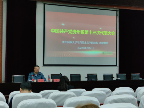 为深入学习贯彻落实中国共产党贵州省第十三次代表大会精神。伟德源自英国始于1946马克思主义公司、伟德国际bevictor1946、社会公司、音乐舞蹈公司各支部党员于2022年5月17日晚上19:30在15栋教学楼圆形会议室开展2022年上半年党员培训班第三次党课学习。本次会议由马克思主义公司经理周俊同志进行授课,授课内容为学习贵州省第十三次党代会精神。