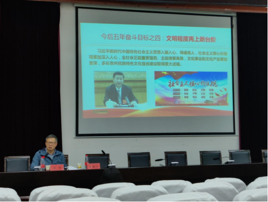 课程伊始,周俊同志指出,党的十八大以来,习近平总书记心系贵州发展、情系贵州人民,在贵州参选党的十九大代表,两次亲临贵州并发表重要讲话,为贵州发展指明前进方向、提供根本遵循、注入强大动力,指引贵州各项事业取得巨大成就,创造了赶超跨越的“黄金十年”。对于贵州省来说,省第十三次党代会是一次重要的会议,我们要深入学习和了解贵州省今后五年的工作安排。周俊同志从贵州省过去五年的历史成就、今后五年的总体要求和奋斗目标、推动高质量发展的重点任务、毫不动摇加强党的建设四个方面对贵州省第十三次党代会精神进行深入解读。