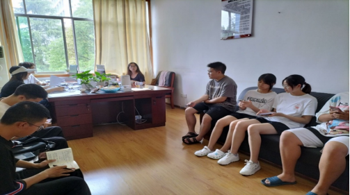 7月17日,团队成员在行政楼306办公室就“三下乡”实践活动具体内容进行工作讨论,鉴于外宣组成员刘洋有过三下乡经历,因此向团队成员分享了活动中需要关注的交谈礼仪、资料整理、新闻稿撰写等方面的相关内容,给团队提供了调研思路。