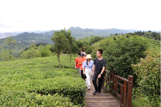 上午11:00左右,团队来到久安古茶园的九龙山种植基地,在这里,孙娜娜老师针对久安茶场提出相关建议:她认为久安古茶园可考虑建设系统性旅游体系,完善相关服务和基础设施,着力打造出一条“青年徒步、中年休闲、老年安养”的特色“康养”项目,为久安古茶与文旅产业赋能。另外,罗主任还提到贵茶集团原本打算将抹茶生产基地设在久安乡,但由于久安乡位于阿哈湖水源保护区上游,建厂会影响阿哈湖水质,因而将其抹茶生产基地移建至铜仁市江口县。