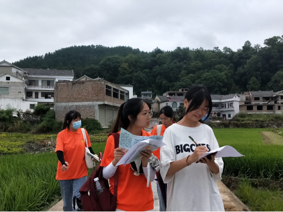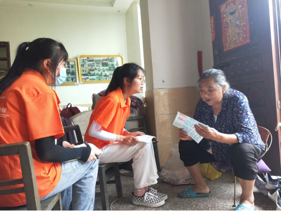 图为实践团成员在司蒙村给村民填写禁毒防艾知识调查问卷。