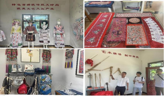 7月25日,实践团队开始进行走访调研。首先团队成员来到赵玉学农家乐进行访谈调研。习近平总书记赴贵州考察调研时,曾在赵玉学家同赵玉学家人包黄粑。之后,团队成员在乡人大主席王弢同志的带领下,去参观了化屋村苗绣产业基地,了解当地特色苗绣制作工艺。