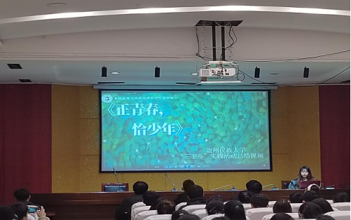第一组,主讲人为王芙蓉同学,她们汇报的主题为“文化赋能,人才兴村、乡村振兴在路上——暑假“三下乡”安顺市幺铺镇社会实践活动汇报”。同学们深入乡村,为我们讲述了高素质人才对乡村振兴的重要性。