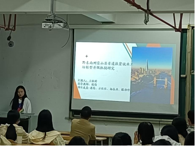 汇报交流会由2020级文化产业管理专业刘洋同学担任主持人。在主持人介绍完出席老师后,石霞雨同学首先进行题为“民族特色村寨可持续发展探索——以贵州省从江县岜沙苗寨为例”的项目汇报,何云同学则以“‘盘州古银杏文化——一体两翼'发展模式探析”为题进行了汇报。第三位汇报人是田苗同学,她的汇报题目是“茶文旅融合背景下石阡苔茶产业的新发展模式——以贵州祥华生态茶业为例”。第四位汇报人是龙小毛同学,他的项目名称是“贵州省少数民族民间歌舞文化的创造性转化和产业化发展——以松桃瓦窑四面花鼓为例”。最后一位汇报人是王依婷同学,她汇报的项目名称是“黔南州雷山县非遗扶贫就业工坊转型升级机制研究”。在每一位汇报人汇报结束后,在场的老师对开展项目的重点和思路、文献资料的搜集准备、田野调查的方法等提出了意见建议。