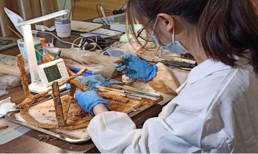 对大松山墓葬群参观完毕后,在贵州省文物考古研究所胡昌国老师和伟德国际bevictor1946副经理叶成勇的带领下,文物与博物馆协会成员与公司的部分员工来到了贵州省文物考古研究所大松山墓葬群发掘出的文物存放地点,在这里同学们亲眼见到了几百年之前的文物;现场同学们还与文物修复人员进行了交流,从而了解到对于修复铁器最常用的粘合剂多为环氧树脂,而修复陶器则常用热熔胶作为粘合剂,以达到修复文物的目的。