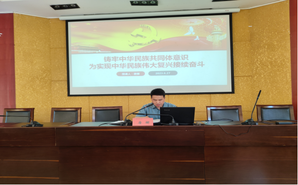 在授课中,唐懈同志从汇聚起各民族团结奋斗的磅礴伟力、深刻认识铸牢中华民族共同体意识是新时代党的民族工作的“纲”、铸牢中华民族共同体意识存在实践问题以及不断铸牢中华民族共同体意识,争做担当民族复兴的时代新人四个方面,作了深入系统的讲解。