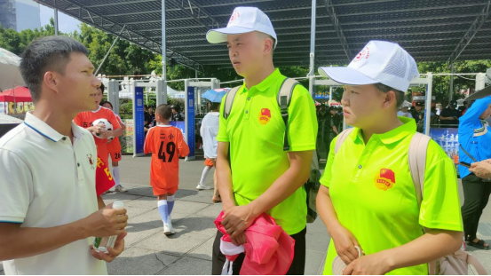 2023年8月12日下午,“两江两村”行动队一行至榕江,刚出榕江高铁站口,就感受到当地人的热情。“村超”志愿者、出租车司机等人热情地递上了矿泉水,并热心引导我们去榕江“村超”比赛地点,在如此热情环境里,我们所有成员的疲惫都被榕江的热情氛围冲散了。我们来到榕江“村超”比赛地入口后,映入眼帘的是一条充满“烟火气”的街道,两旁设置了烧烤区、小吃区和服饰区等数百个临时摊位,摊位老板的身影格外地忙碌,游客脸上洋溢着幸福……惬意地品尝着当地牛瘪、羊瘪以及百香果等特色美食。