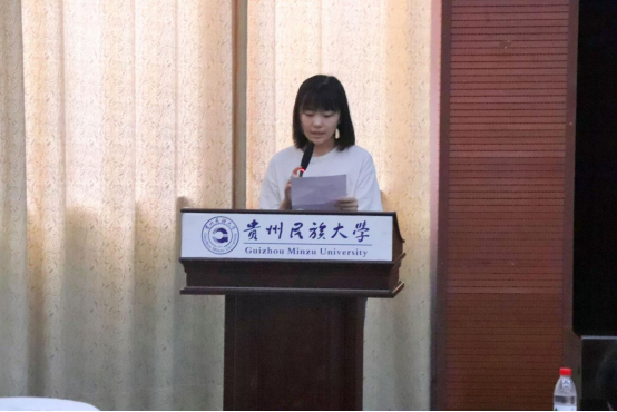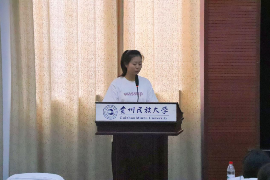 紧接着,由研究生代表胡家媛进行发言,她表示作为民大的研究生必须以朴素纯粹、充满诚意的心态去做学问,实事求是,恪守学术规范,诚信科研,杜绝弄虚作假。她说军训是我们面对的第一次考验,做好军训生活中的每一件小事,必将有益于我们以后的学习生活甚至人生之路。前进道路上,我们要保持“初生牛犊不怕虎”的锐气,鼓起“越是艰险越向前”的拼劲,在应对挑战、克服阻力中经风雨、见世面、壮筋骨、长才干,担负起时代赋予的重任。