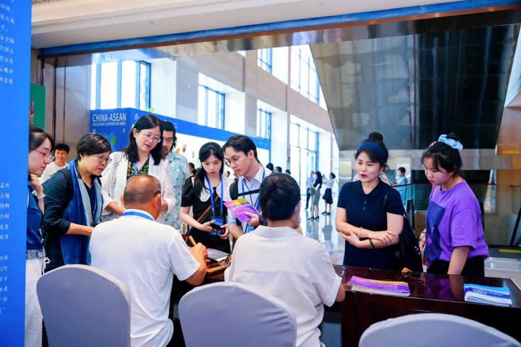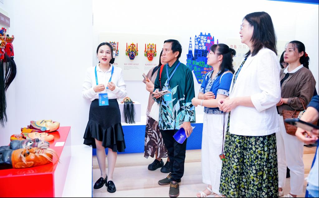 中国—东盟面具文化展览于7月24日—28日在中国—东盟教育交流周永久会址二楼展厅成功举行。展览分为“傩之历史”“傩之表情”“傩之交流”等版块,全面展示了傩面具文化的博大精深。每个面具表情背后,都凝聚着中华文化的精神内涵,蕴藏着各族人民生活的喜乐哀愁,共同歌颂人类的真善美。崔海洋副董事长一行7月25日参观了展览。论坛间歇,与会专家学者参观了中国—东盟面具文化展览。