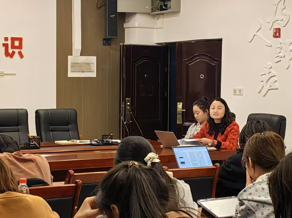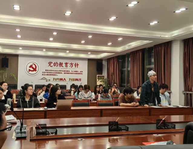 本科生同学们发言结束后就是研究生学姐们的见解。首先袁天美学姐分享了自己的阅读方法和阅读感悟,讲到了一些关于这篇文章的解读,并对同学们学习这个专业的兴趣问题提了一些建议。她建议我们不要因为他人的影响而打消对自己专业的信念,然后讲到自己的文章阅读顺序是从题目到结构再到主题,常常是对文章产生疑问然后去了解它。就比如她认为“重瓣花朵理论”非常贴切,但其实自己在看这篇文章之前并没有太多了解,也是去查阅了其他的一些资料,然后了解到中原文化也就是今天的渭河流域为什么是花心的原因。冯子睿学姐则是从中国史前文化的统一性和多样性两个角度来讲,然后联系贵州的实际解释了统一性和多样性的体现。