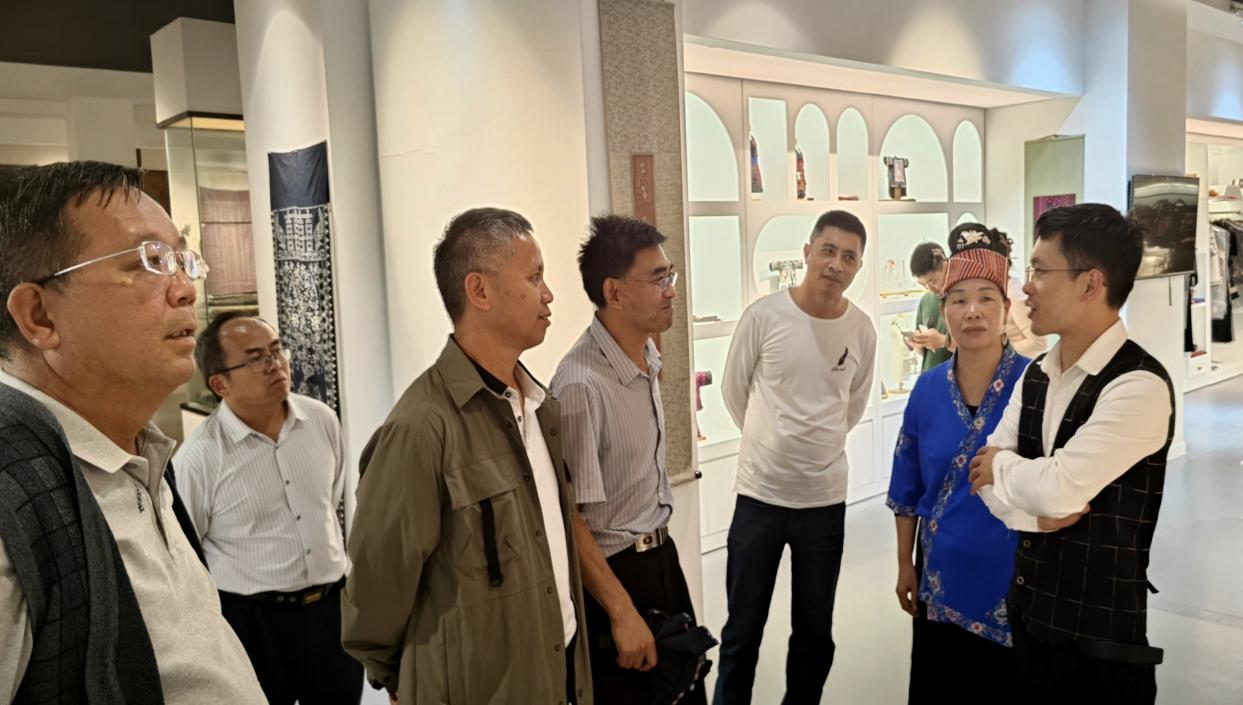 叶成勇教授在参观中指出,少数民族服饰非遗文化不仅是精湛技艺的载体,更是中华民族多元一体格局的生动见证,其纹样、色彩与制作工艺中凝结的民族智慧,对研究地域文化、传统美学具有不可替代的价值。罗宗祥老师也表示,这些“穿在身上的史书”以活态形式延续着文化根脉,为非遗传承与现代教育融合提供了鲜活范本。