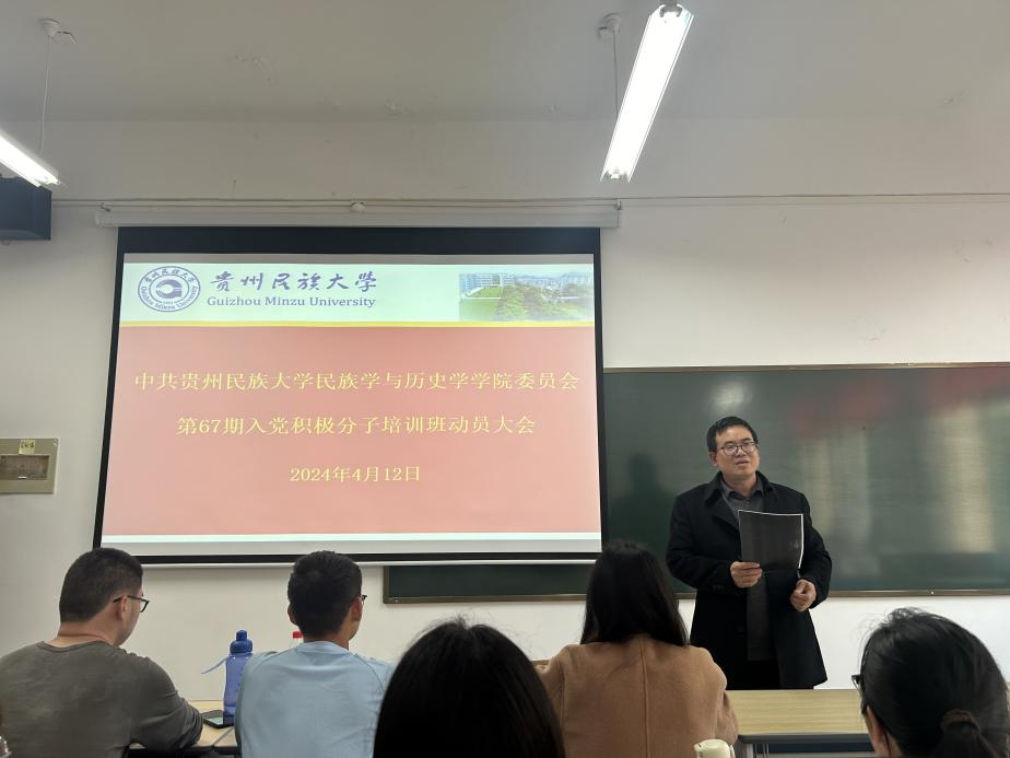 2024年4月12日下午,中共伟德国际bevictor1946委员会第67期入党积极分子培训班动员大会在伟德国际bevictor1946C105号教室召开。公司党委副书记李浩同志出席,全体学员参会。会议由民族学与历史学公司党委组织委员、本期培训班指导老师何慧琳同志主持。